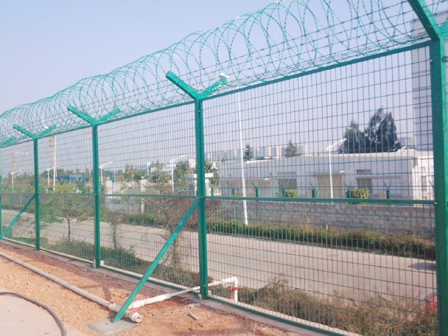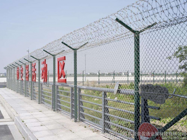機(jī)場圍界就是應(yīng)用于機(jī)場跑道兩側(cè)的隔離網(wǎng),作用是防止行人誤入跑道,影響飛機(jī)正常運(yùn)行的有效措施。這個(gè)機(jī)場圍界也分為機(jī)場內(nèi)隔離與機(jī)場外隔離,機(jī)場內(nèi)隔離的要求更高,頂部設(shè)置刀刺網(wǎng),外隔離就比較簡單一些,主要還是防止閑雜或者違法人員進(jìn)入飛行禁區(qū),盡管這雙重保護(hù)之下,還是會(huì)有人進(jìn)行每天巡邏,以防止個(gè)別情況發(fā)生。機(jī)場圍界廣泛應(yīng)用于各大飛機(jī)場的邊界,用作邊界圍欄防護(hù)網(wǎng),還可以用于港口圍界防護(hù)、碼頭鋼絲防護(hù)網(wǎng)、飛機(jī)場防護(hù)護(hù)欄網(wǎng)、Y型安全防御護(hù)網(wǎng),也可以用于公園、動(dòng)物園、賓館酒店、市政道路等領(lǐng)地周邊的安全防護(hù)圍網(wǎng)。
